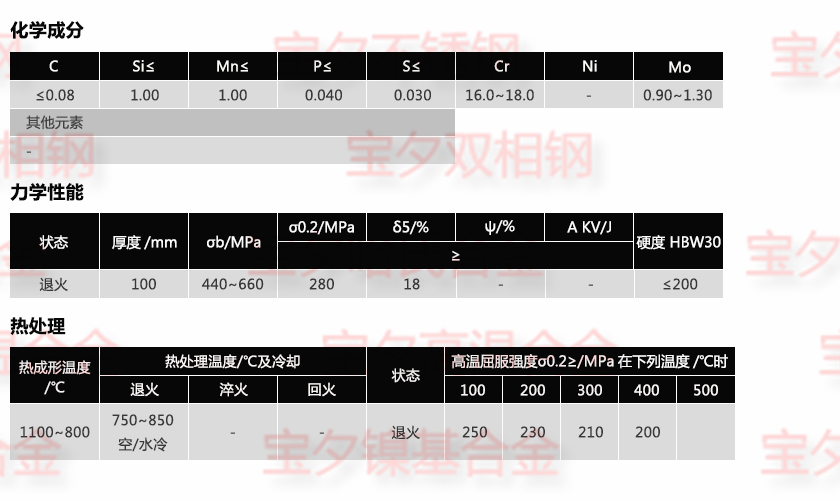 寶鋼X6CrMo17-1,太鋼X6CrMo17-1,新日鐵X6CrMo17-1,日本冶金X6CrMo17-1,蒂森克虜伯X6CrMo17-1,奧托昆普X6CrMo17-1,日本神戶X6CrMo17-1