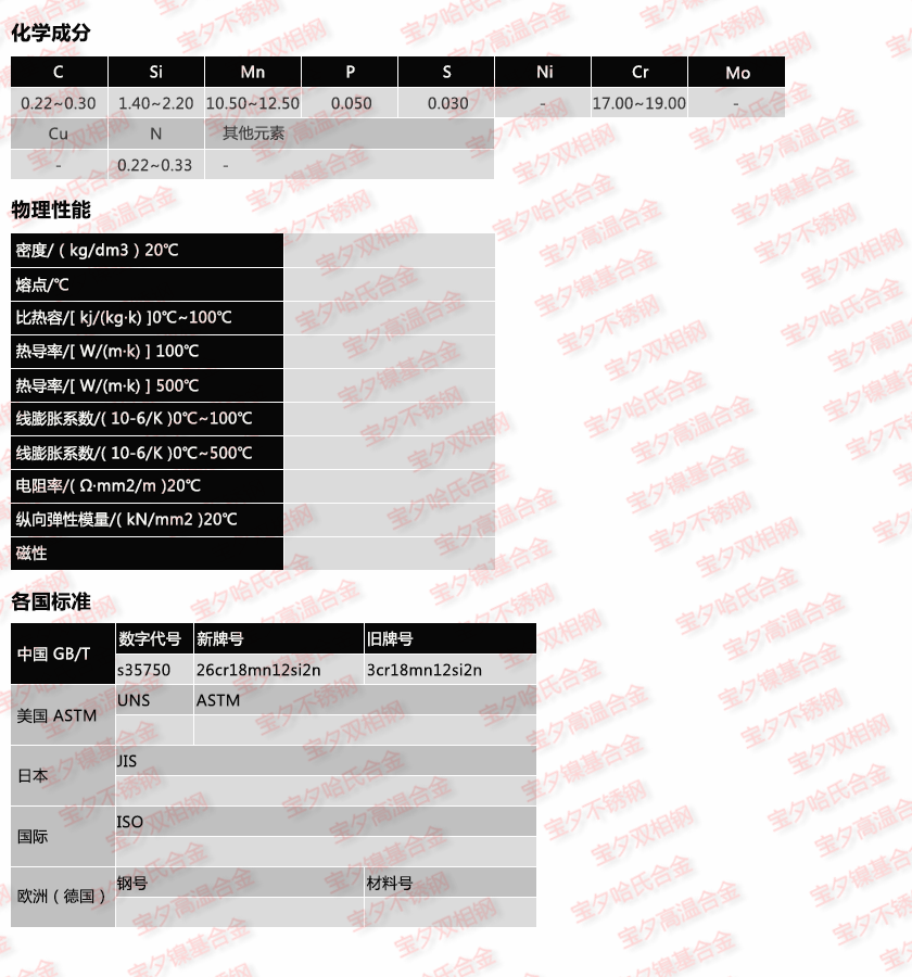 寶鋼26Cr18Mn12Si2N,太鋼26Cr18Mn12Si2N,新日鐵26Cr18Mn12Si2N,日本冶金26Cr18Mn12Si2N,蒂森克虜伯26Cr18Mn12Si2N,奧托昆普26Cr18Mn12Si2N,日本神戶26Cr18Mn12Si2N