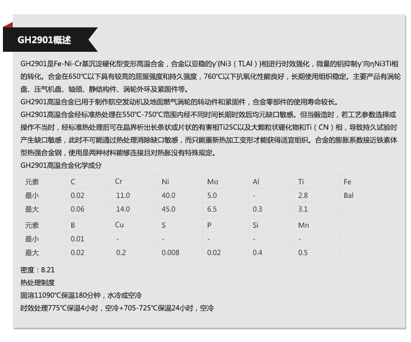 上海歐薩卡集團—GH2901材質單,上海歐薩卡集團—GH2901成分表,上海歐薩卡集團—GH2901是什么材料