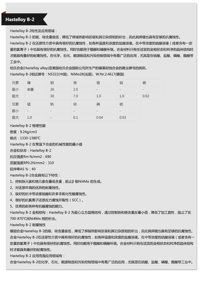 上海歐薩卡集團(tuán)—Hastelloy B-2材質(zhì)單,上海歐薩卡集團(tuán)—Hastelloy B-2成分表,上海歐薩卡集團(tuán)—Hastelloy B-2是什么材料