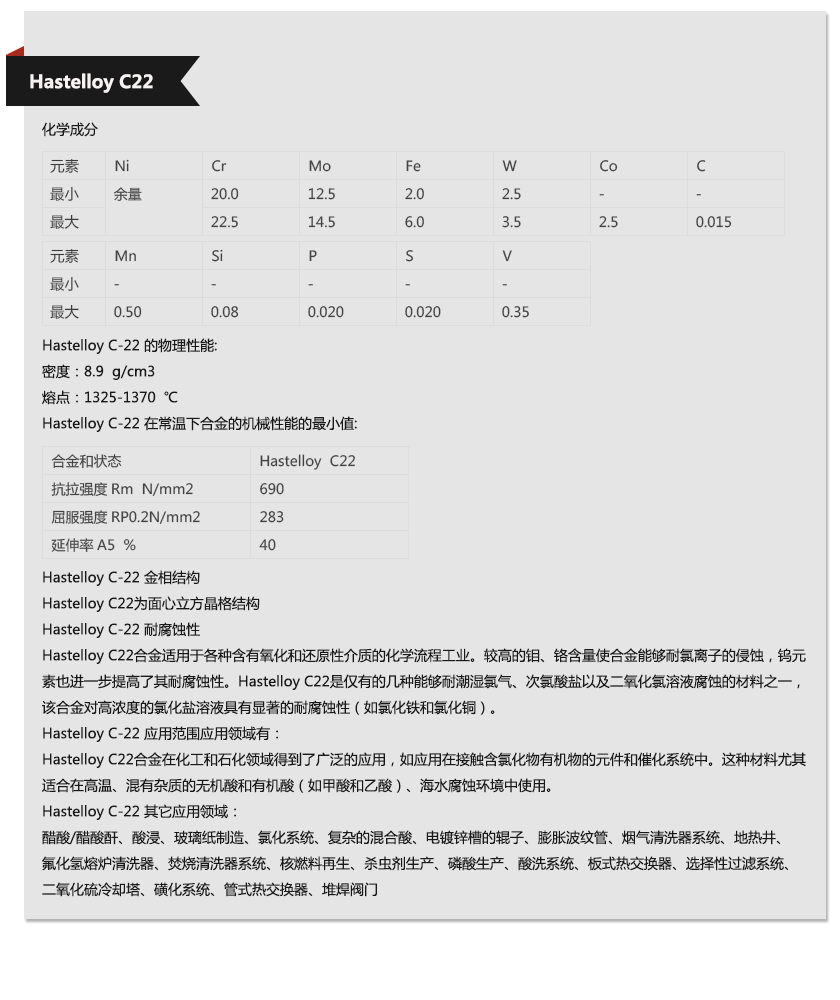 上海歐薩卡集團(tuán)—Hastelloy C22材質(zhì)單,上海歐薩卡集團(tuán)—Hastelloy C22成分表,上海歐薩卡集團(tuán)—Hastelloy C22是什么材料