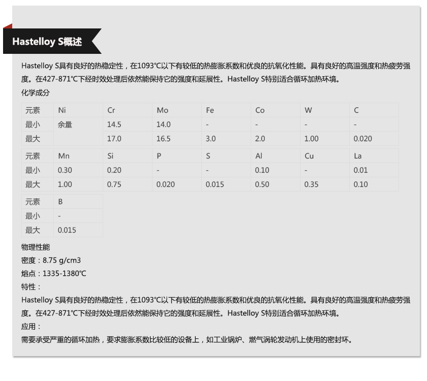 上海歐薩卡集團(tuán)—Hastelloy S材質(zhì)單,上海歐薩卡集團(tuán)—Hastelloy S成分表,上海歐薩卡集團(tuán)—Hastelloy S是什么材料