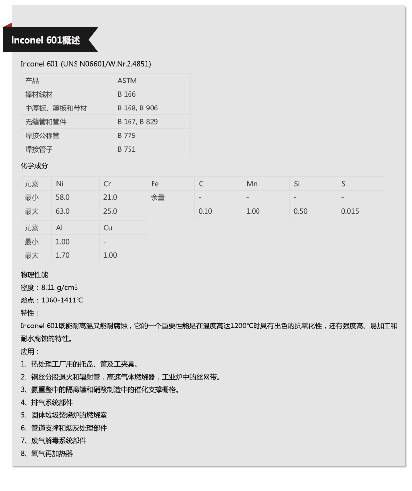 上海歐薩卡集團(tuán)—lnconel 601材質(zhì)單,上海歐薩卡集團(tuán)—lnconel 601成分表,上海歐薩卡集團(tuán)—lnconel 601是什么材料