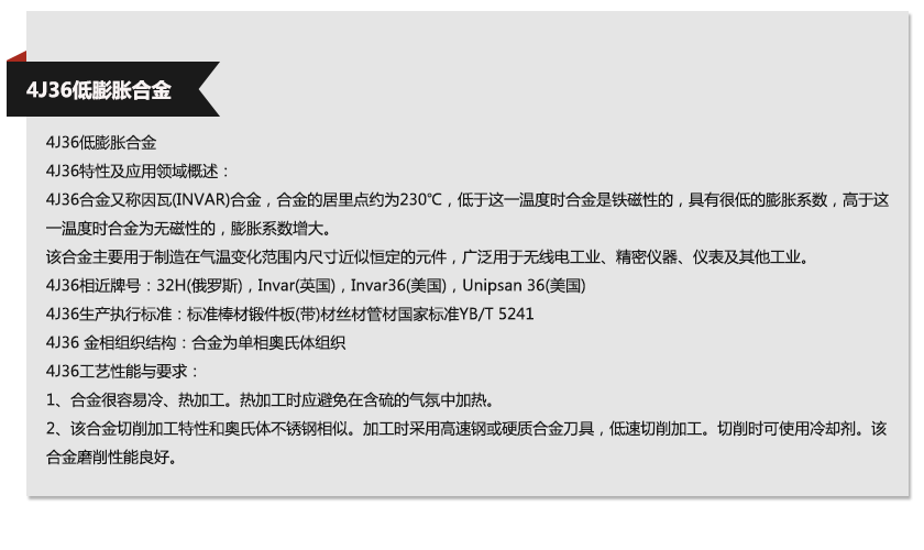 4J36板材可分別稱為4J36不銹鋼板、4J36鋼板、4J36卷板、4J36開平板、4J36帶鋼、4J36冷軋板、4J36熱軋板、4J36薄板、4J36中板、4J36厚板、4J36特厚板等。