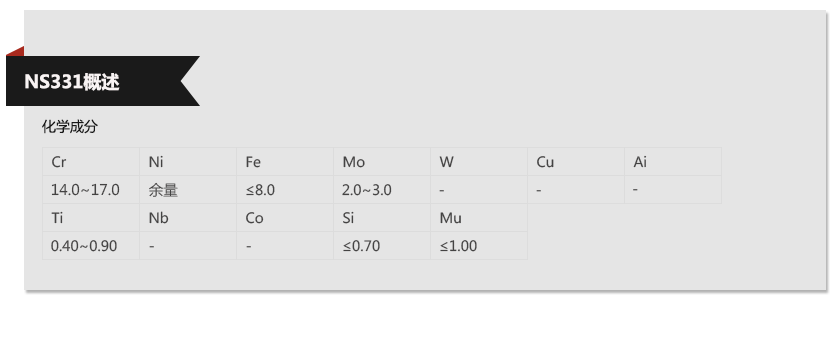 上海歐薩卡集團(tuán)—NS331材質(zhì)單,上海歐薩卡集團(tuán)—NS331成分表,上海歐薩卡集團(tuán)—NS331是什么材料