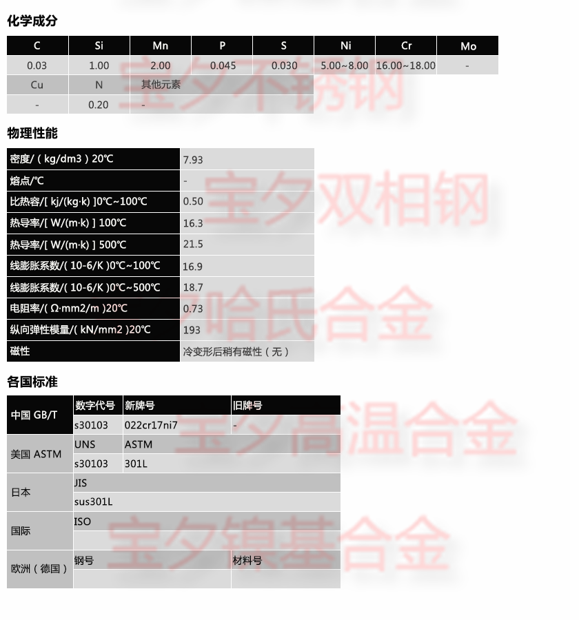 寶鋼s30103,太鋼s30103,新日鐵s30103,日本冶金s30103,蒂森克虜伯s30103,奧托昆普s30103,日本神戶s30103